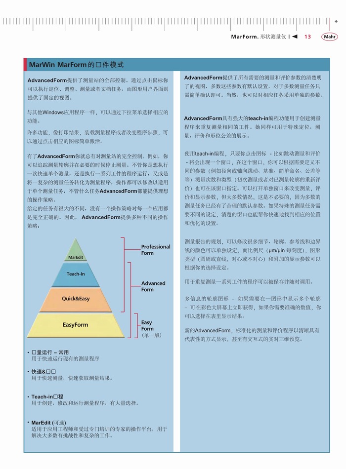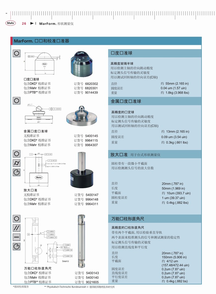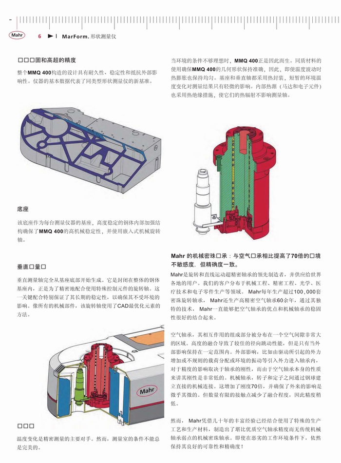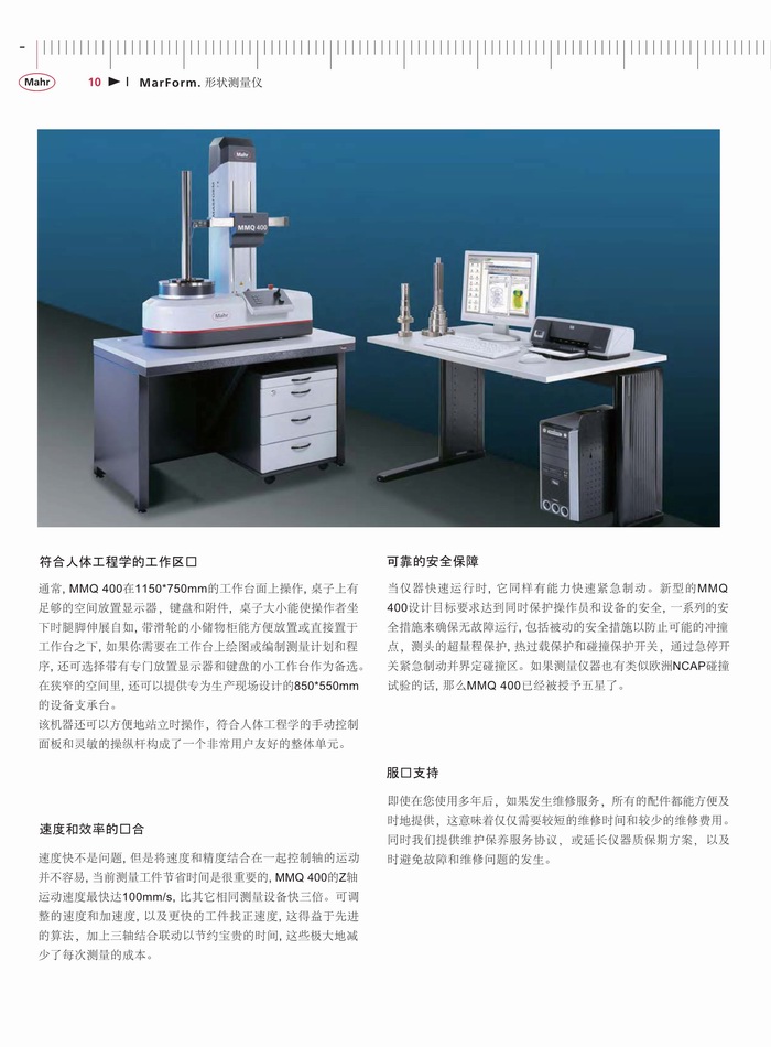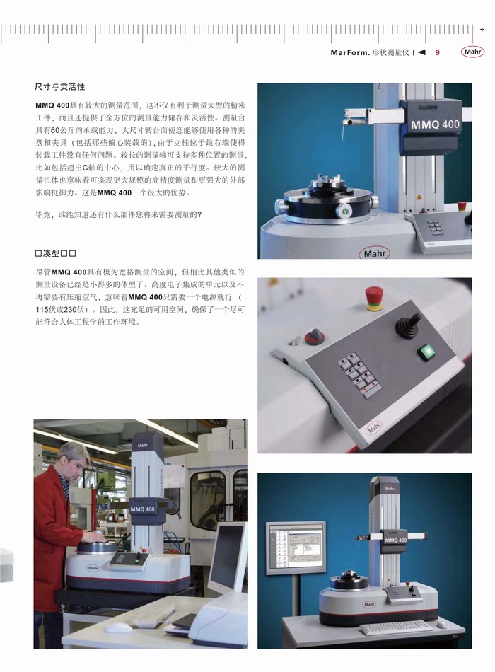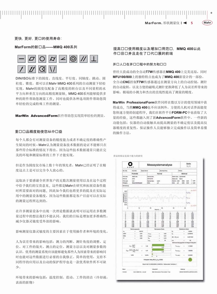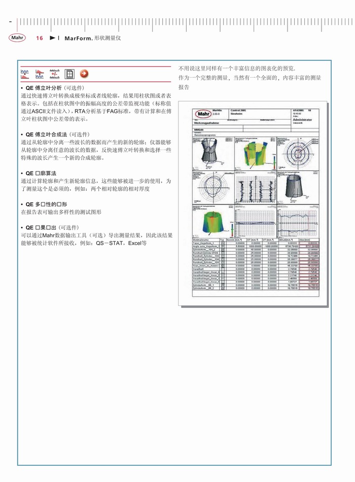 一、产品特点:为了确保一个工件的功能性和耐久性,关键因素是它的尺寸,尤其是其形状。这方面的要求如圆度、平面度、直线度、同轴度及跳动 - 特别是在轴对称测量工件上正变得越来越严格。这些要求只能是通过使用高精度的形状测量仪的可靠测试来达到。无论您是处理燃油喷射技术、微电子、精密力学或医疗技术,关键功能部件正变得更小、更精确。为了使生产部门充分利用指定的公差,测量不确定度必须保持尽可能的低。MarForm帮助您在没有增加测试费用情况下降低生产成本,这是通过高度自动化、灵活性和精确度的创新仪器。MarForm提供了达到所有要求的理想解决方案。