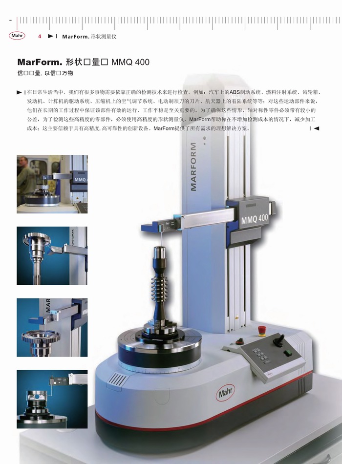 在日常生活当中,我们有很多事物需要依靠正确的检测技术来进行检查,例如:汽车上的ABS制动系统、燃料注射系统、齿轮箱、 发动机、计算机的驱动系统、压缩机上的空气调节系统、电动剃须刀的刀片、航天器上的着陆系统等等;对这些运动部件来说, 他们在长期的工作过程中保证该部件有效的运行,工作平稳是至关重要的。为了确保这些情形,轴对称性零件必须带有较小的公差,为了检测这些高精度的零部件,必须使用高精度的形状测量仪,MarForm帮助你在不增加检测成本的情况下,减少加工成本;这主要信赖于具有高精度,高可靠性的创新设备。MarForm提供了所有需求的理想解决方案。