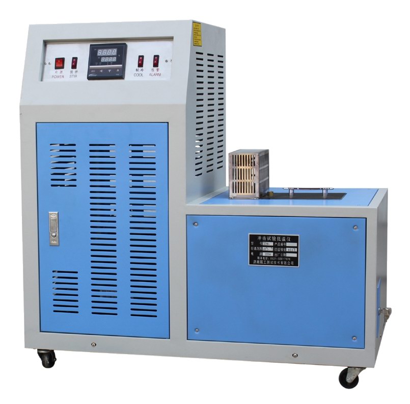 CDW-60型冲击试验低温议是本公司根据GB229-2007《金属夏比缺口冲击试验方法》中对低温装置的要求而最新研制开发的压缩机制冷设备。本设备采用进口双压缩机制冷技术,采用热平衡原理及循环搅拌方式,达到对试样的自动均匀冷却、恒温,可完全满足国家标准GB229-2007,以及美标、欧标中ASTM E23-02a、EN10045、ISO148、ISO83等相关标准中所规定的各项控温指标。本设备操作简单方便,工作效率高是材料低温冲击试验中的最理想的试样冷却、保温设备。同时亦可用于其他低温检测和试验工作。